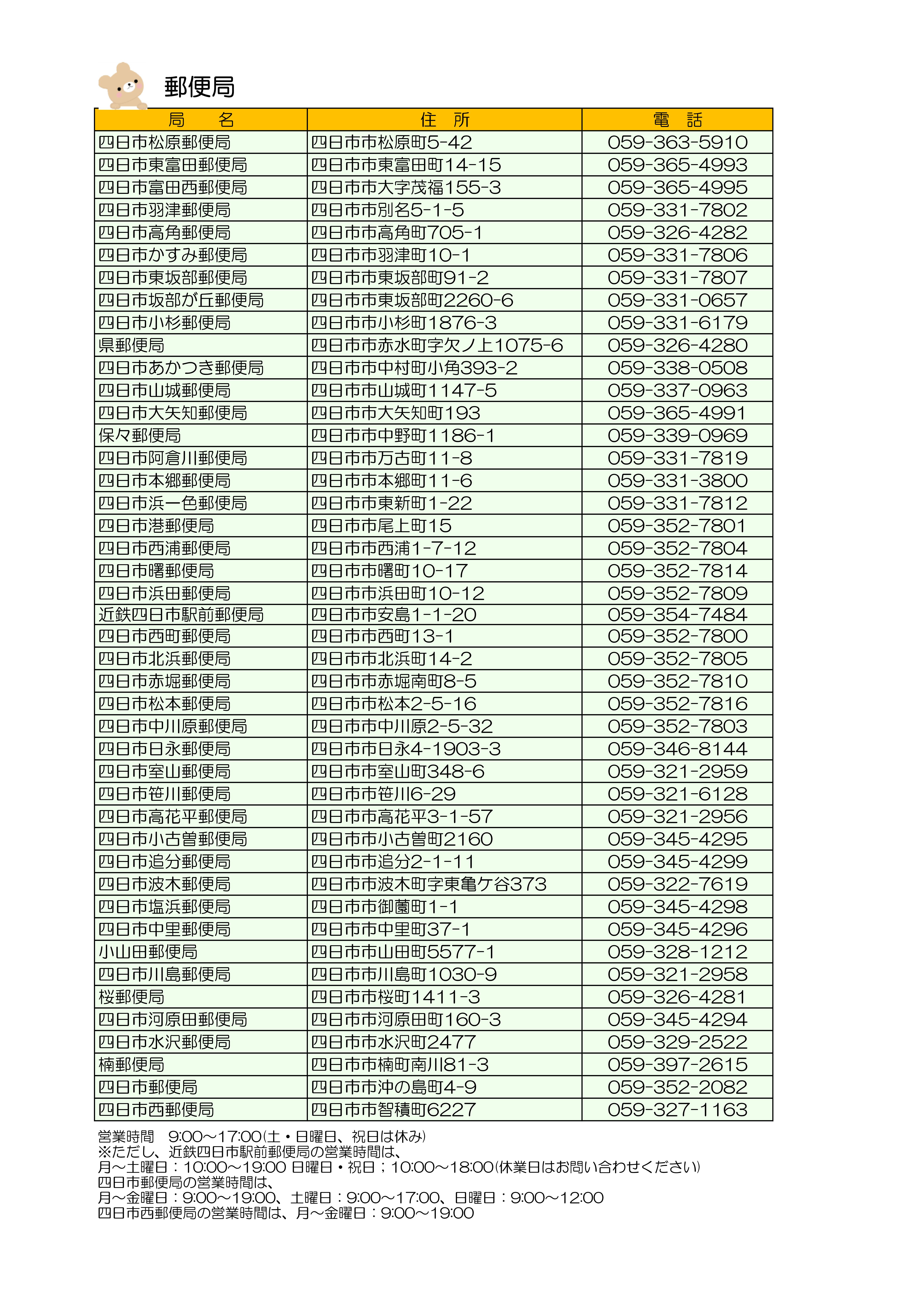 トップ > 市民の方へ > 社会教育 > 四日市まちじゅうこども図書館 > 郵便局 >郵便局