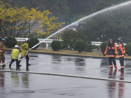 県内の市町から分団員の方が入校し現場における安全管理や指揮要領等を学びました。
