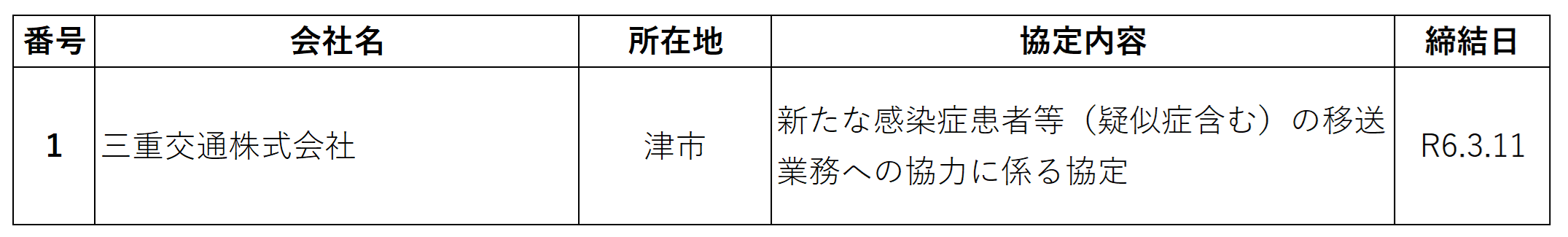 四日市市では、新たな感染症の発生・まん延時における移送体制の整備のため、感染症法に基づく協定のほか、市独自に関係機関と協定を締結しております。
