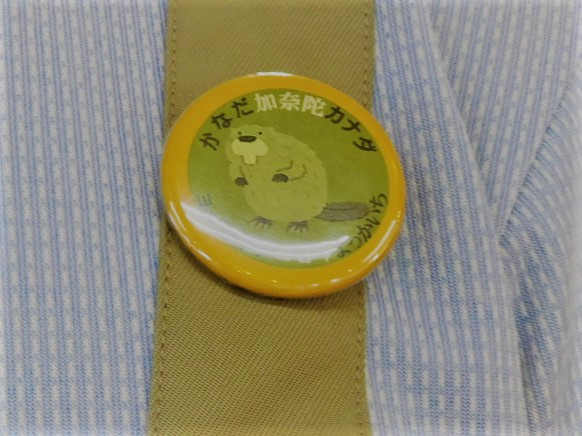 店員さんには、国体推進課でデザインしたカナダと四日市市をモチーフにしたデザインの缶バッジをつけていただいています。いくつかデザインがありますので、ぜひチェックしてみてください。