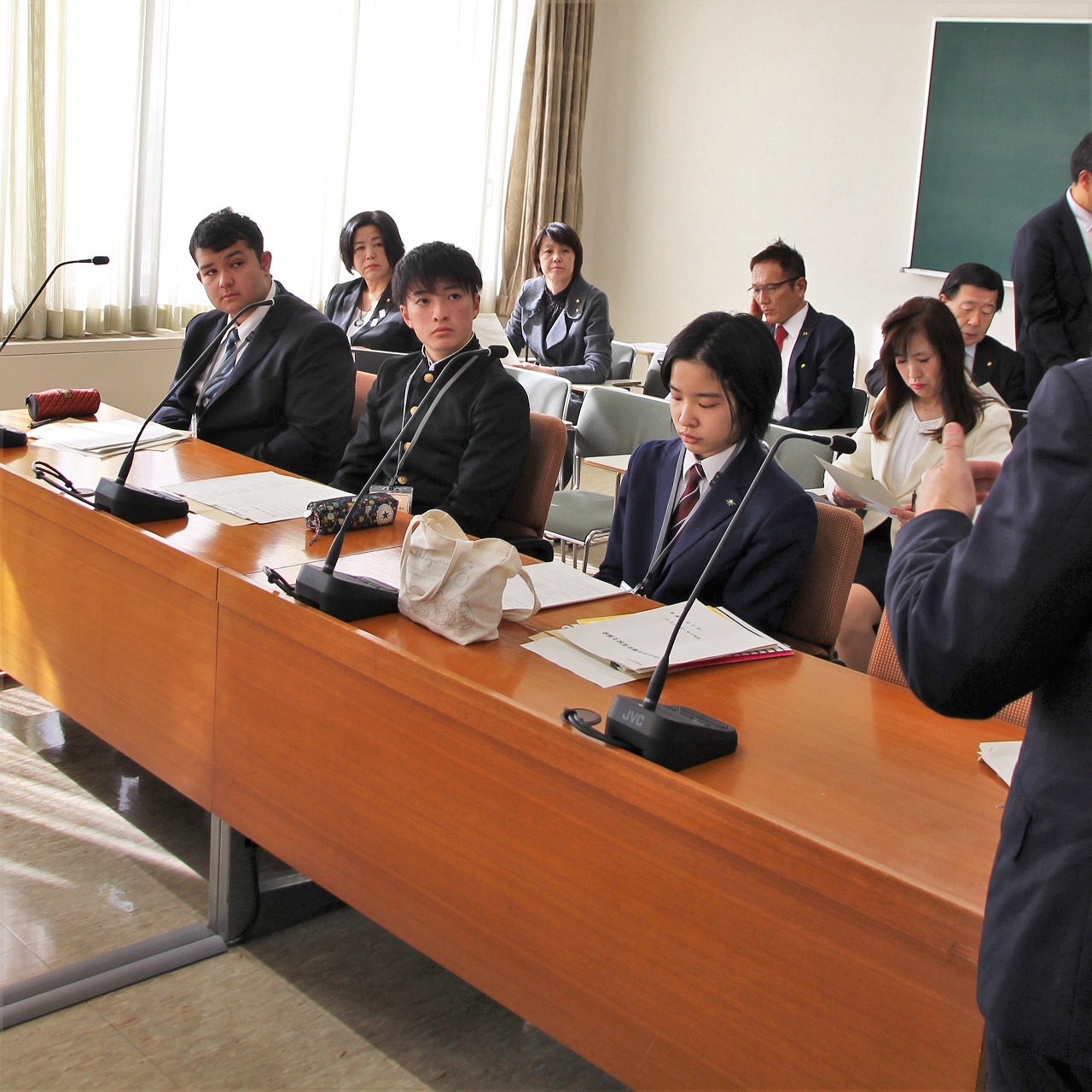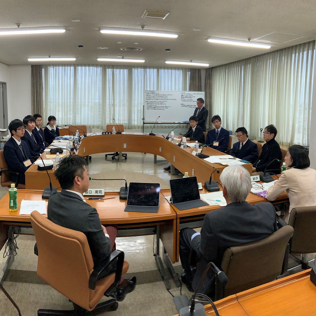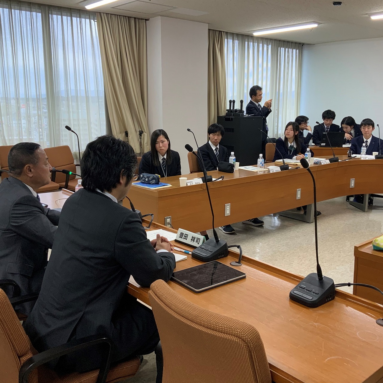 高校生議員の皆さんはまだ少し緊張気味で真剣な表情で聞いています。