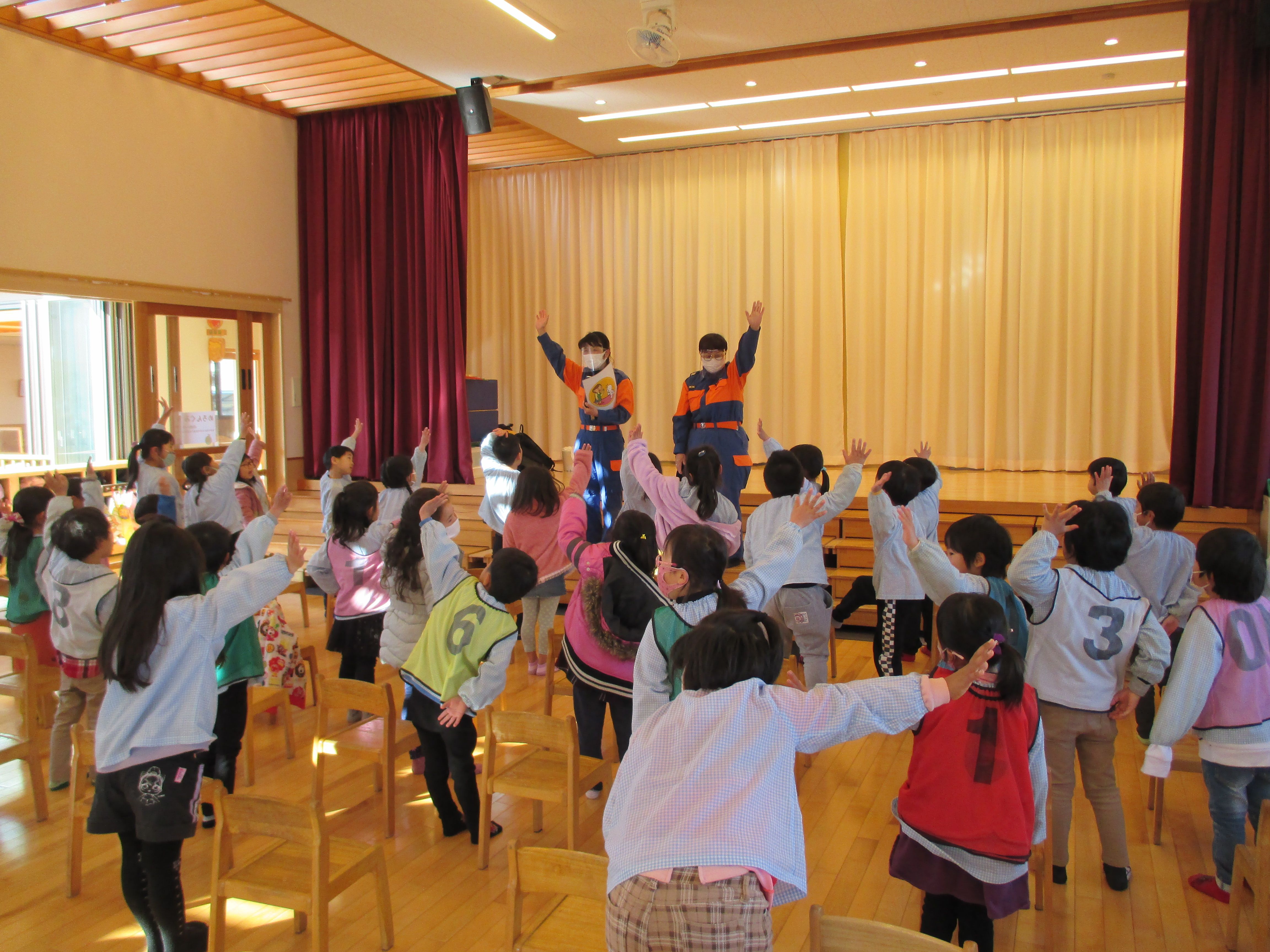 令和04年02月09日 サルビア分団が河原田保育園で防火啓発活動を実施