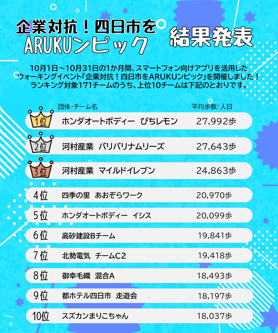 令和7年度 企業対抗!四日市をARUKUンピック結果発表