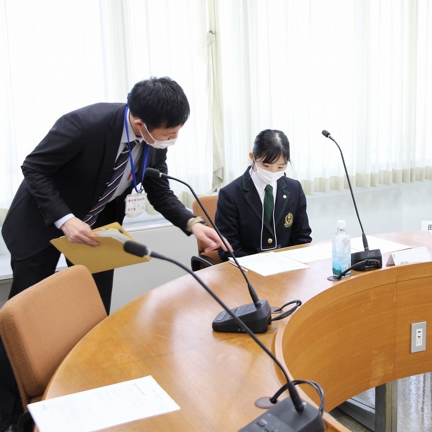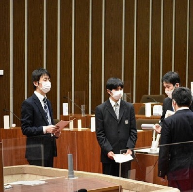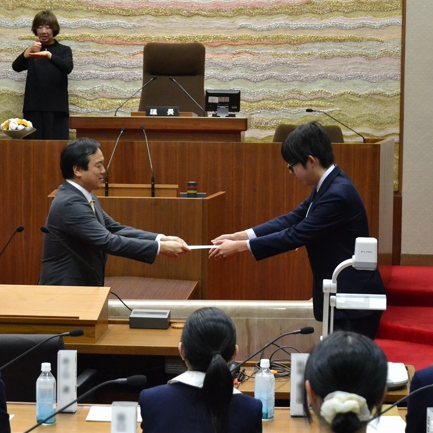 高校生議長から意見書を四日市市議会議長に提出しました。