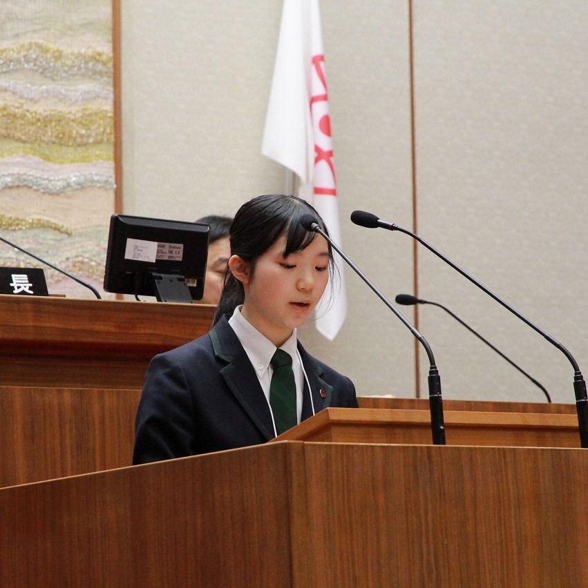 高校生議長に、暁高等学校6年制 谷口 璃空さんが選出されました。