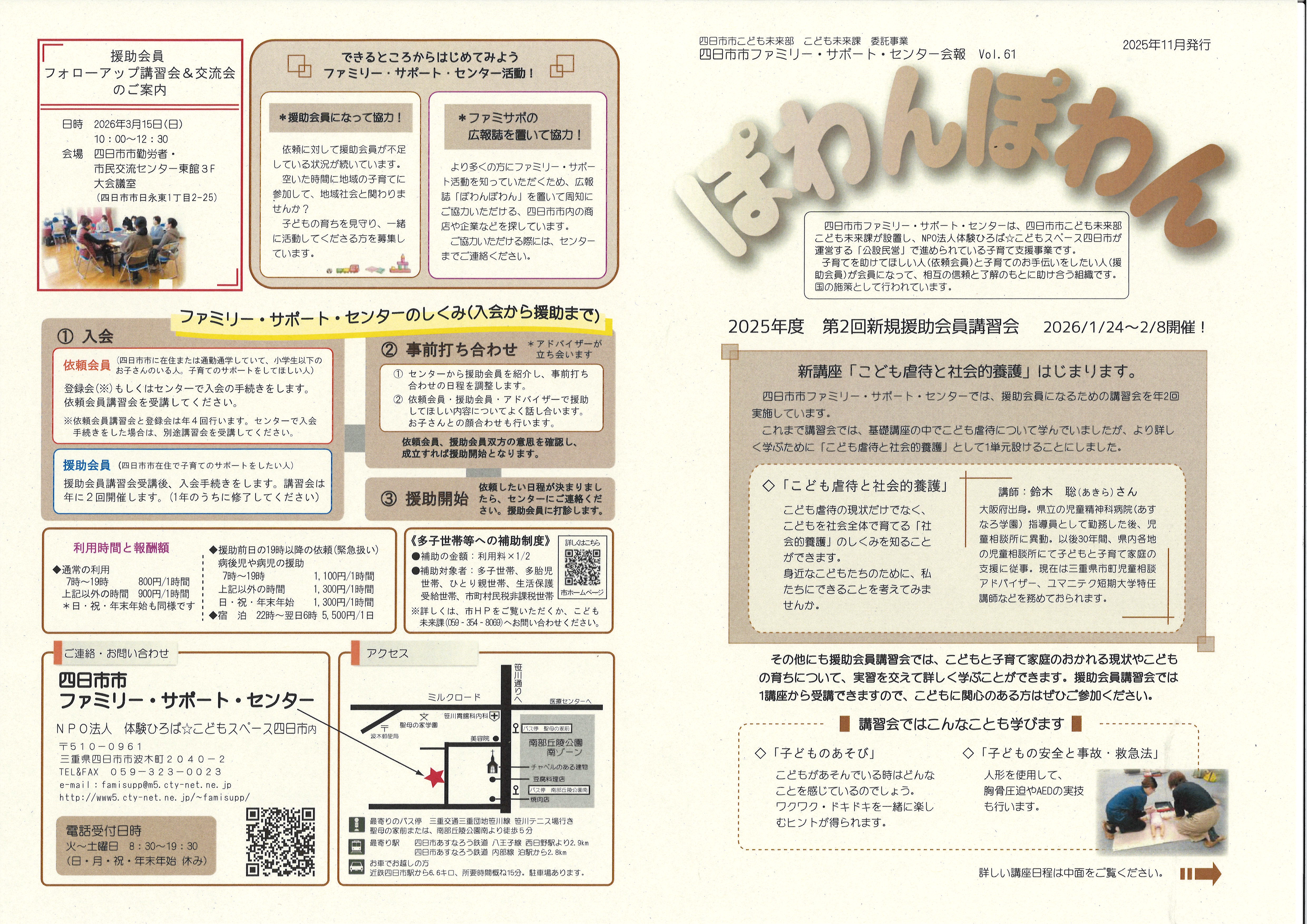 - 【全地区】(組回覧)「四日市市ファミリー・サポート・センター会報誌「ぽわんぽわん」」(JPG/3MB)