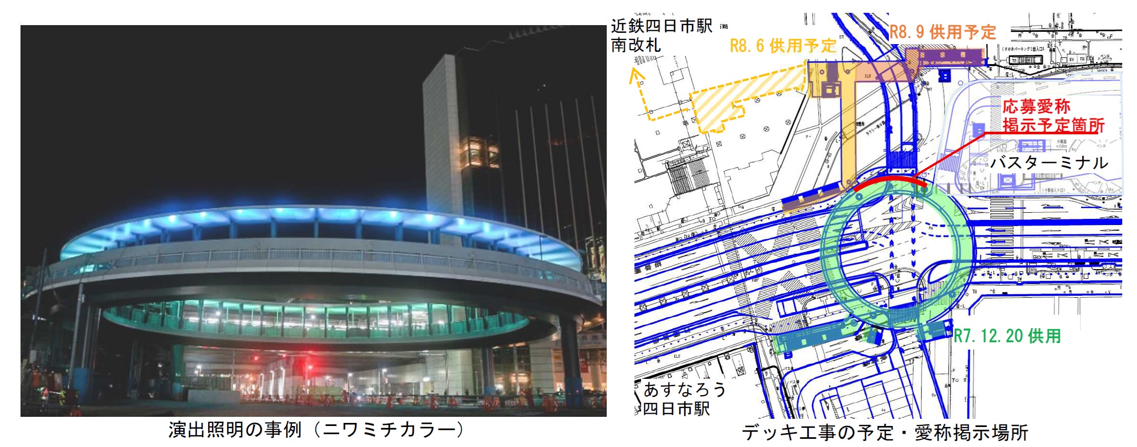 また、供用に先立ち、同日に完成式典を開催し、市民投票により決定する円形デッキの愛称を発表しますので合わせてお知らせします。