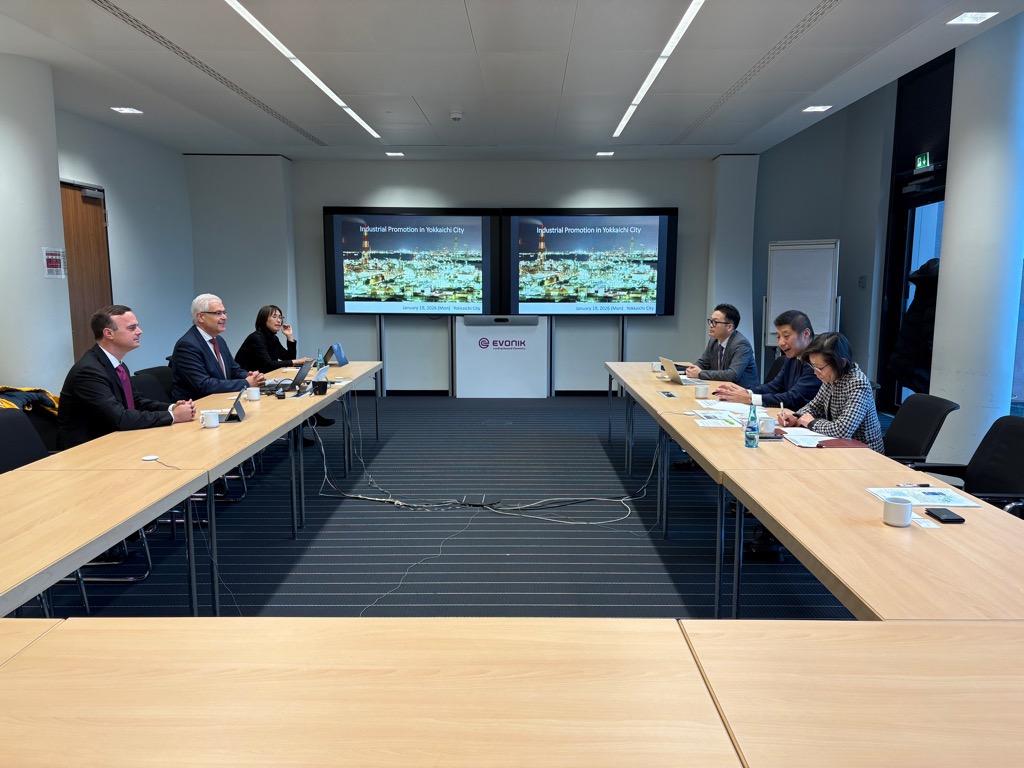 (1)四日市コンビナートに立地する日本アエロジル株式会社の株主である、エボニックインダストリーズAGを訪問した。四日市市からは、新プラント新設への謝辞および新たな投資を期待している旨を伝えた後、今後も企業と行政が連携して産業発展をしていくために、四日市市の産業、企業立地支援制度の紹介や四日市コンビナート先進化検討会での企業との連携実績・先進的取組の紹介、また、四日市コンビナートカーボンニュートラル(CN)化推進委員会でのCNへ向けた取組の紹介をし、意見交換を行った。