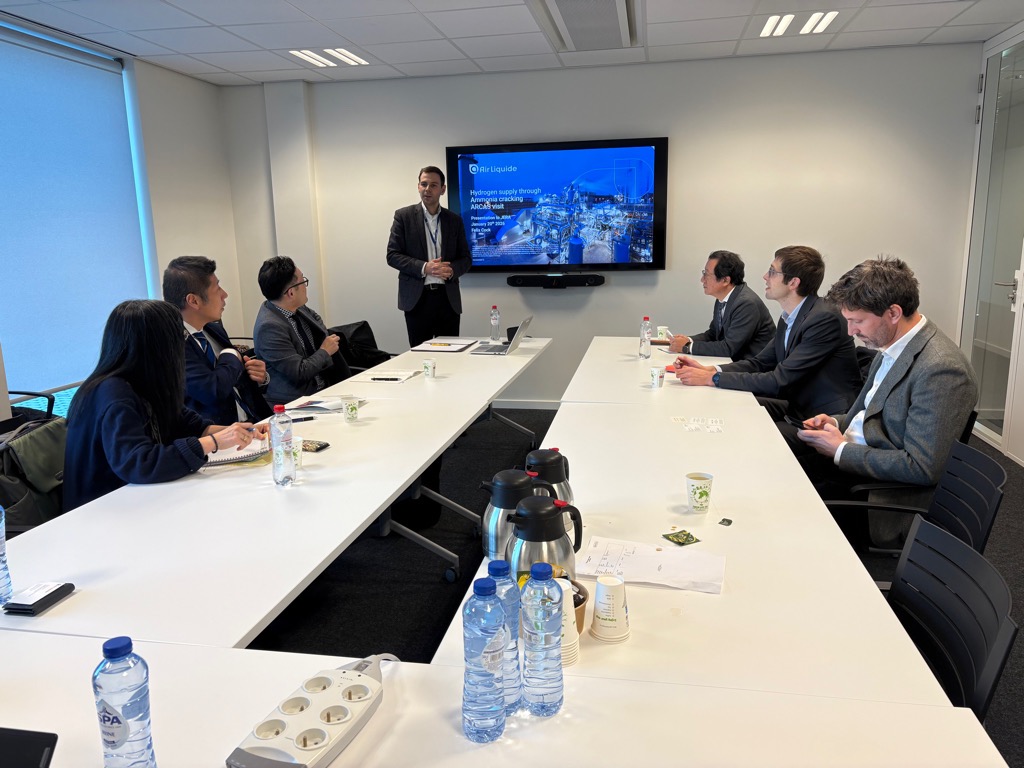 (2)四日市市内に事業所が立地する日本エア・リキード合同会社の本社となるエア・リキード社のオーバーハウゼンプラント、アントワーププラントを訪問した。オーバーハウゼンプラントでは、20MW級のプロトン交換膜(PEM)水電解プラント、アントワーププラントでは世界初の工業規模のアンモニア分解パイロットプラントを視察し、今後の水素・アンモニア利用の展望について意見交換を行うことで、四日市市での水素・アンモニア利用の可能性検討に向けた知見を得ることができた。