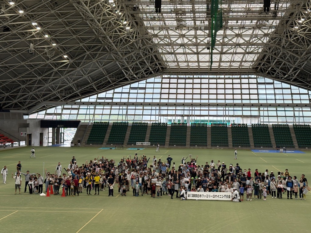 第13回四日市ファミリーロゲイニング大会集合写真の様子(四日市ドーム内)
