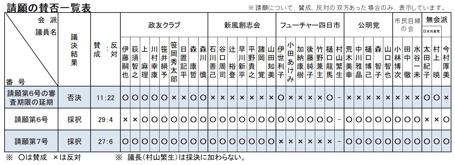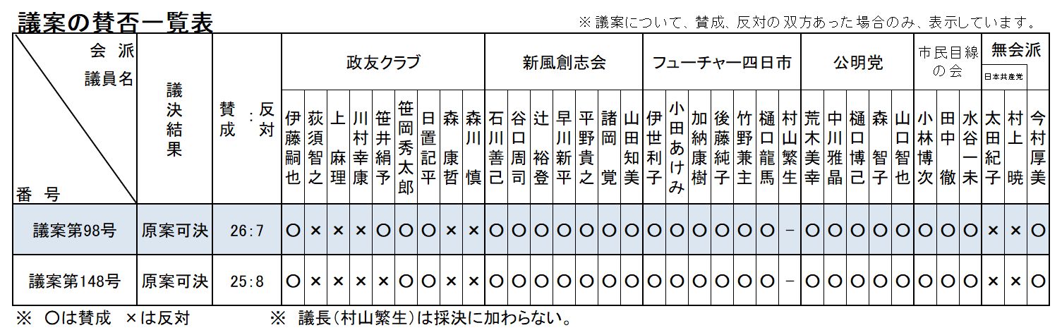 | 四日市市議会議員定数の見直しを求めることについて | 採択 | 賛成多数 | |